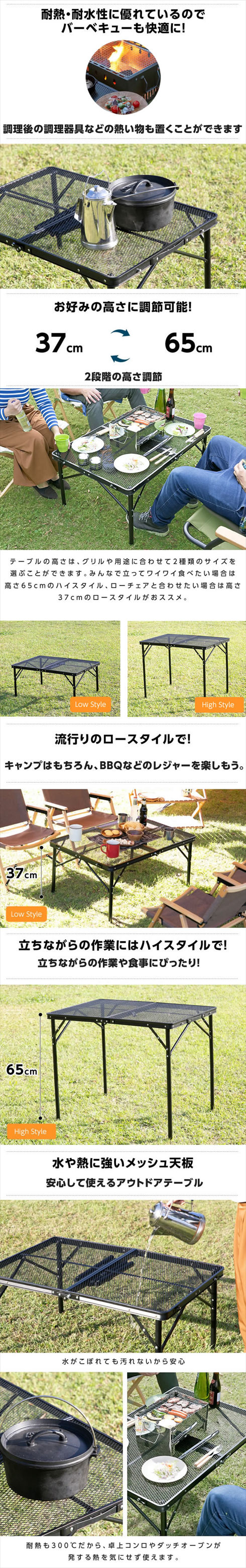 ロースタイルもハイスタイルも楽しめる 高さ調節可能なおすすめおしゃれテーブル Greenfield グリーンフィールド アウトドア スポーツ